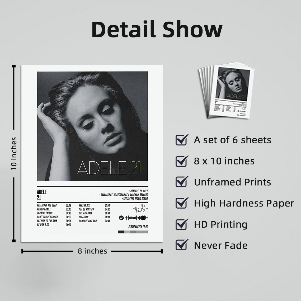 🎵 This is a collection of six high-resolution posters featuring images inspired by music albums, with each poster measuring 8 x 10 inches and printed on sturdy cardstock. These posters can be used to create a unique and personalized wall decoration, giving your space a stylish and aesthetic touch.
